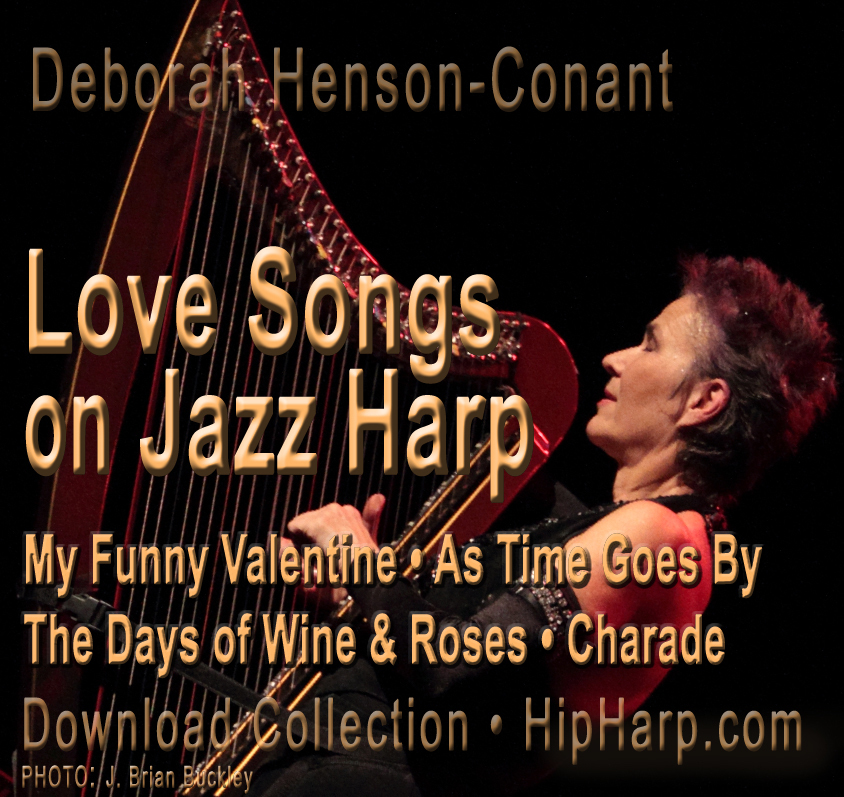 Four Love-Song Jazz Standards played on Jazz Harp by Deborah Henson-Conant: Days of Wine & Roses, My Funny Valentine, Charade & As Time Goes By